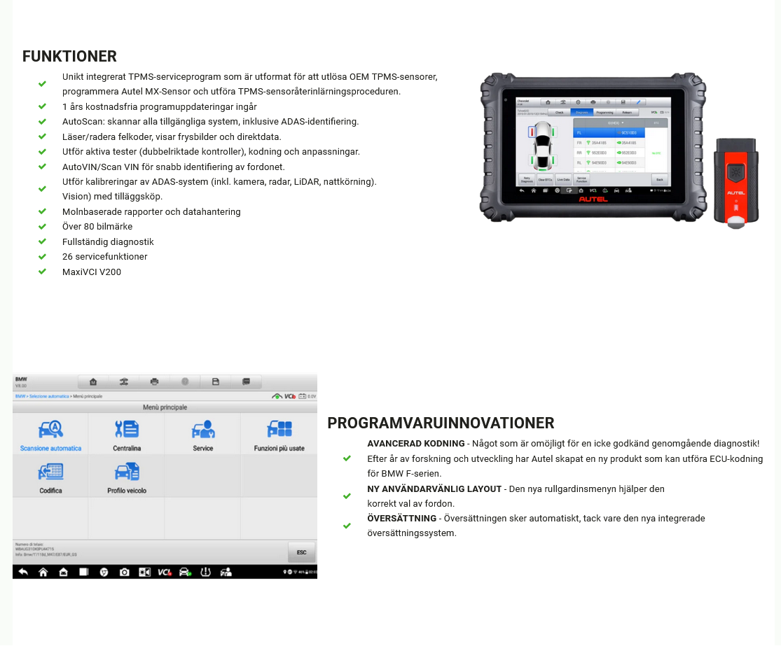 - Kombo-produkt = både fullständiga funktioner för TPMS programmering och vanlig diagnos av fordon