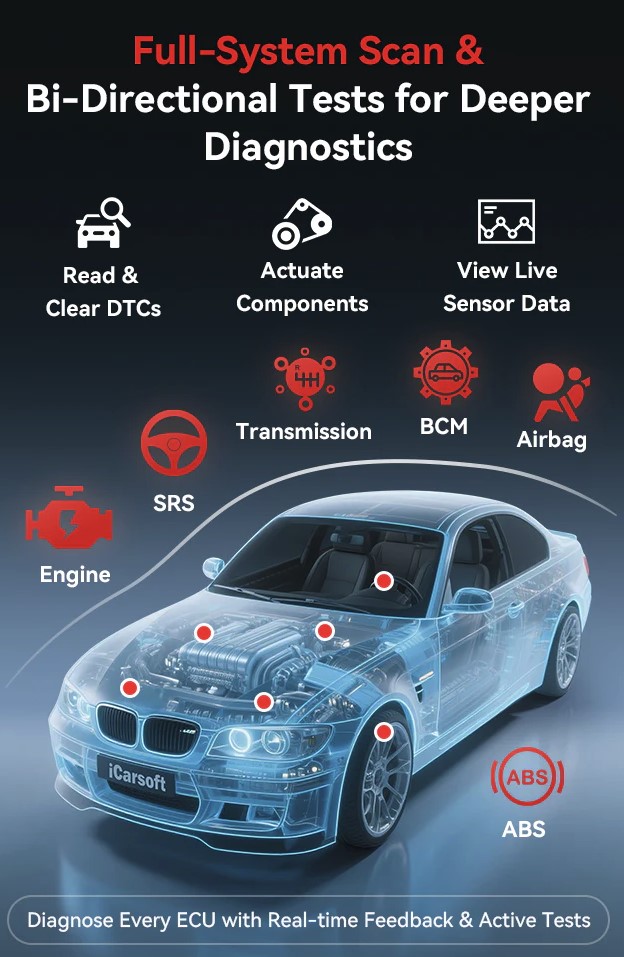 Det är en förbättrad version av iCarsoft CR Pro+, och utför en omfattande systemskanning och servicefunktioner på nästan alla märken.