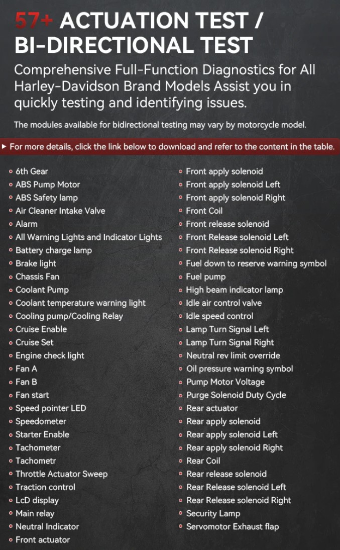 Detta säkerställer maximal kompatibilitet och djupgående felsökning för alla moderna Harley-modeller upp till årsmodell 2023.