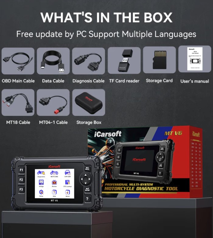 iCarsoft MTV6 är ett avancerat diagnosverktyg utvecklat för Harley-Davidson-motorcyklar.