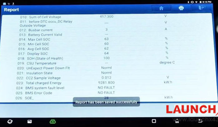 Detta gör att defekta battericeller snabbt kan identifieras och bytas ut utan att varje cell behöver mätas separat. Efter genomförd diagnos kan dessutom en komplett diagnostisk rapport för EV-batteriet genereras.