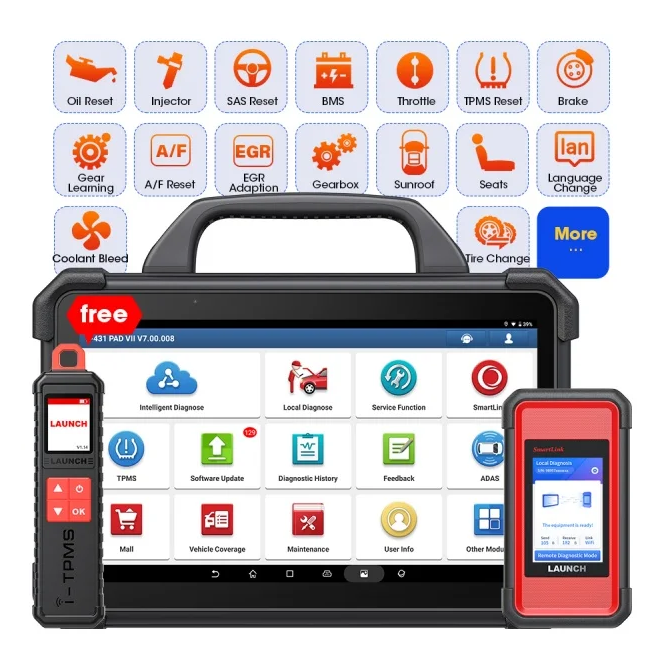 60+ servicefunktioner (t.ex. oljeservice, DPF-regenerering, batteribyte/BMS, bromsluftning, kalibreringar, TPMS m.m.).