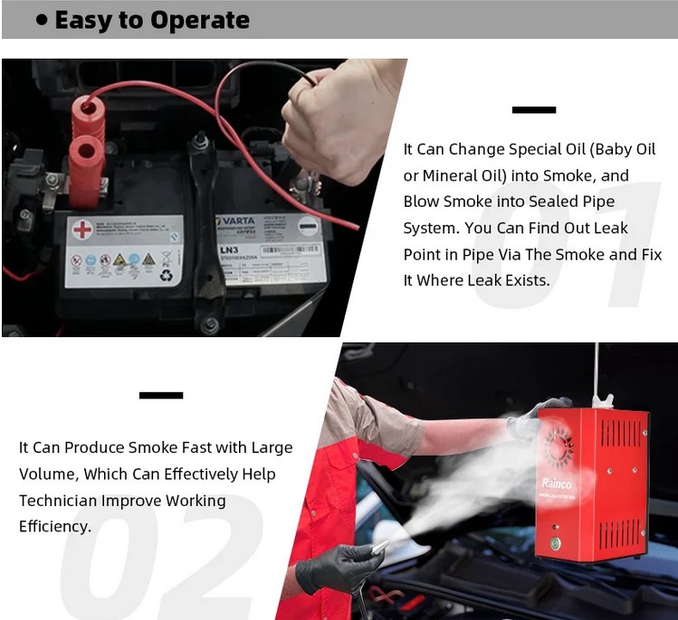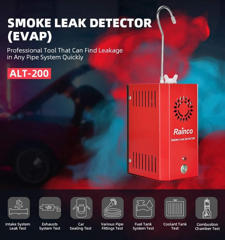 Rökmaskin/läcklagetester för felsökning av läckage i slangar, insug och dylikt. Mycket användbar för att lokalisera dåliga tätningar, packningar, o-ringar och sprucka slangar.