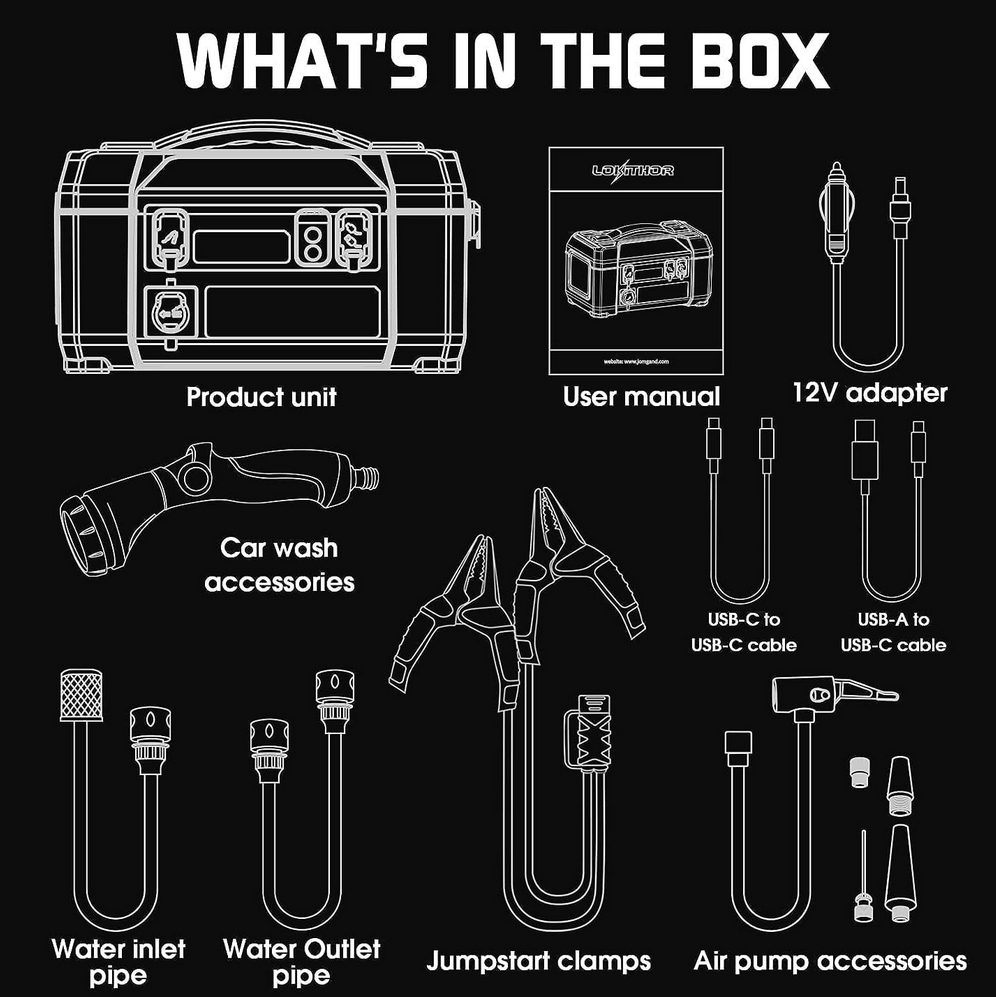 Möt Lokithor AW401 Starthjälp (Nyhet med lampa, högtryckstvätt och kompressor) – den ultimata allt-i-ett-lösningen för ett aktivt liv.